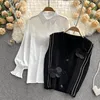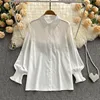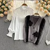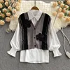 Women Flower Ruffle Sweater Vest Spring 2022 Short Loose Knitted Ladies Pullover Tops Outerwear & White Shirt Two Piece Set New