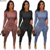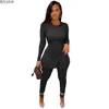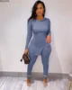 RStylish Autumn Rib Knitted Casual Solid Two Pieces Set Women Full Sleeve Side Split T Shirt Long Pants Slim Tracksuit