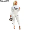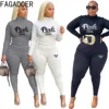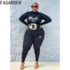 FAGADOER Sexy Bodycon Plus Size Tracksuits XL-5XL Women Turtleneck PINK Letter Print Top And Legging Pants Two Piece Outfit 2022