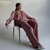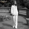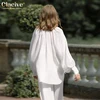 Clacive Fashion Loose Straight Trouser Suits Women Spring Casual White Home Suit Female Elegant V-Neck Shirt Two Piece Pants Set