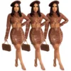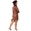 Women's long sleeve two-piece set artificial leather lace up high neck top + high waist tight skirt sexy Street suit 2-piece set