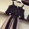 Plus Size Women Off Shoulder Solid Shirts + Long Mesh Skirts Fashion Sets Summer Casual Ruffles Slash Neck Female Suits H83