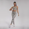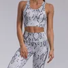 Women 2 Piece Snakeskin Yoga Set Fitness Tracksuit Quick Drying Workout Clothes Pocket Sport Vest Running Trousers Gym Clothing