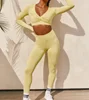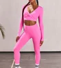 2 PCS Solid Yoga Set Women Fitness Long Sleeve Workout Suit Gym Clothing V-neck Crop Top Sport Pants Sportwear Dancing Tracksuit