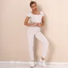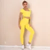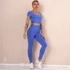 Women Solid 2 Two Piece Clothes Seamless Workout Gym Clothing Fitness Elastic Short Sleeve Crop Top Sport Leggings Activewear