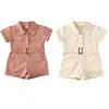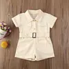 Toddler Kids Baby Girls Clothes Summer Romper Jumpsuit Solid Outfit With Belt