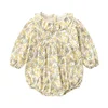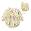 Flower Printed Baby Bodysuits for Spring and AutumnLong Sleeve Cotton Girls Romper with Hat
