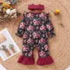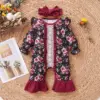 Baby Girl Rompers Yellow Floral Print Onesie For Newborn Long Sleeve Spring/Fall Outfits Infant Girls 2Pcs Jumpsuit Headbnd