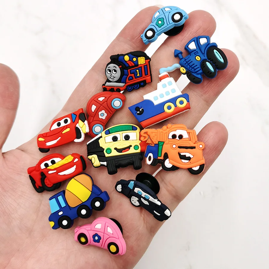 1pcs Funny Car PVC Shoe Charms Ambulance School Bus Sandals Accessories Garden Shoe Buckle Decoration For Croc Jibz Kid Gift