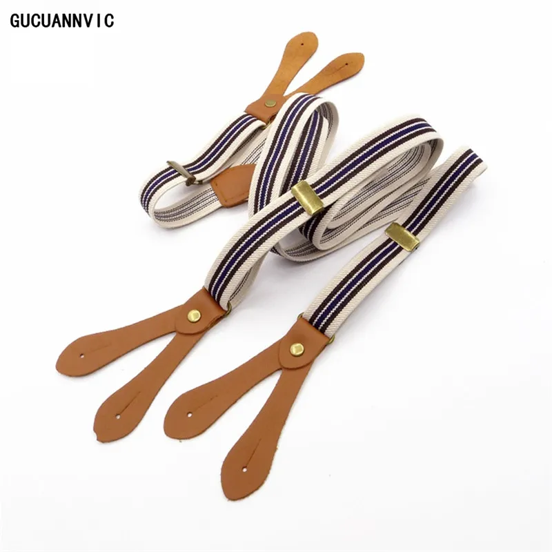 New Button stripes suspenders Men and women 6 button elastic adjustable pants suspender Leather accessories mens braces