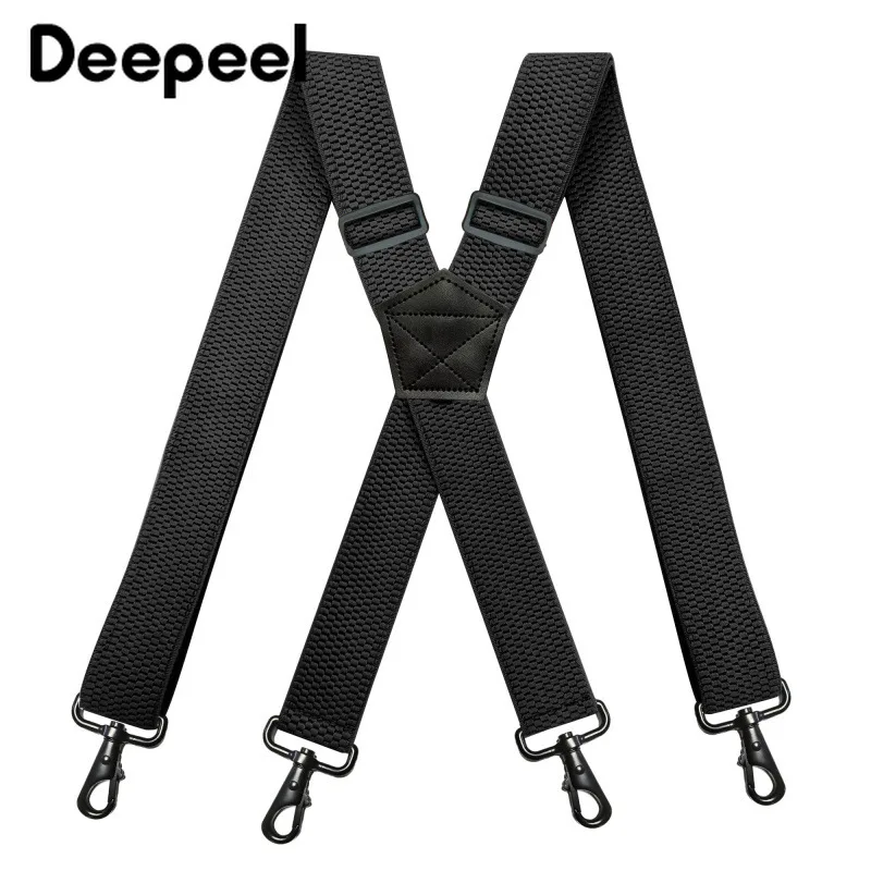Deepeel 1pc 3.5*120cm Men's Braces X-Shaped Corn Grain Stretch Wide Suspenders Black Hook Buckle 4 Clip Straps Male Jockstrap