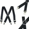 Men's Suspenders Elastic 2.5cm X Back Metal Cross Black Plating Buckle Solid Fashioin British Style 4 Clips Strap Leather