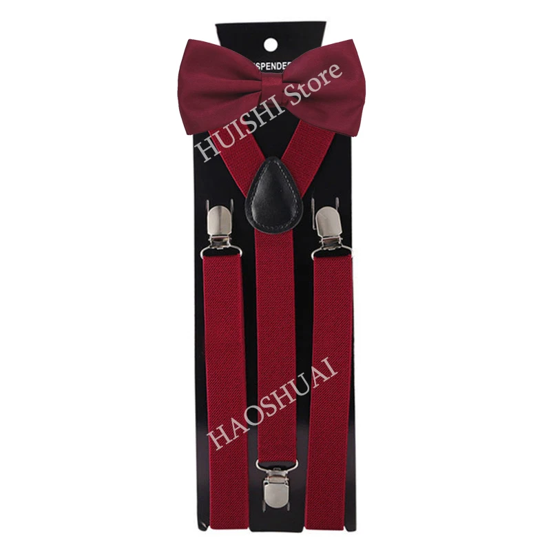 HUISHI Fashion Plain Black Suspenders for Men Navy Red Burgundy Braces Unisex Strap Bretels Mannen Women Bow Tie Suspenders Blue