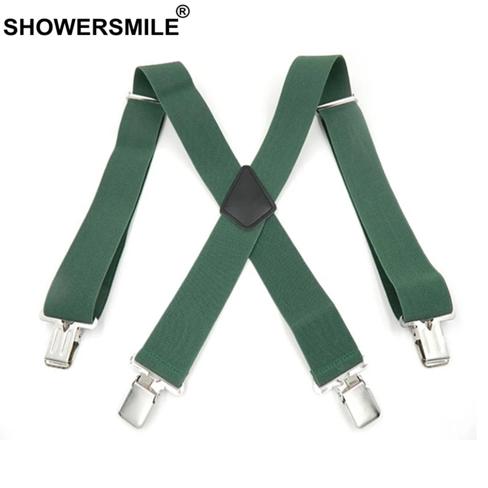 SHOWERSMILE Green Men Shirt Suspenders Wide 5cm Mens Braces 120cm 4 Clips Adjustable Leather Trousers Strap Gift For Boyfriend