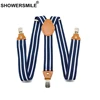 SHOWERSMILE Men Suspenders Belt Navy Unisex Women Suspender Adult Stripe Braces Leather Adjustable 3 Clips Male Pants Straps Man