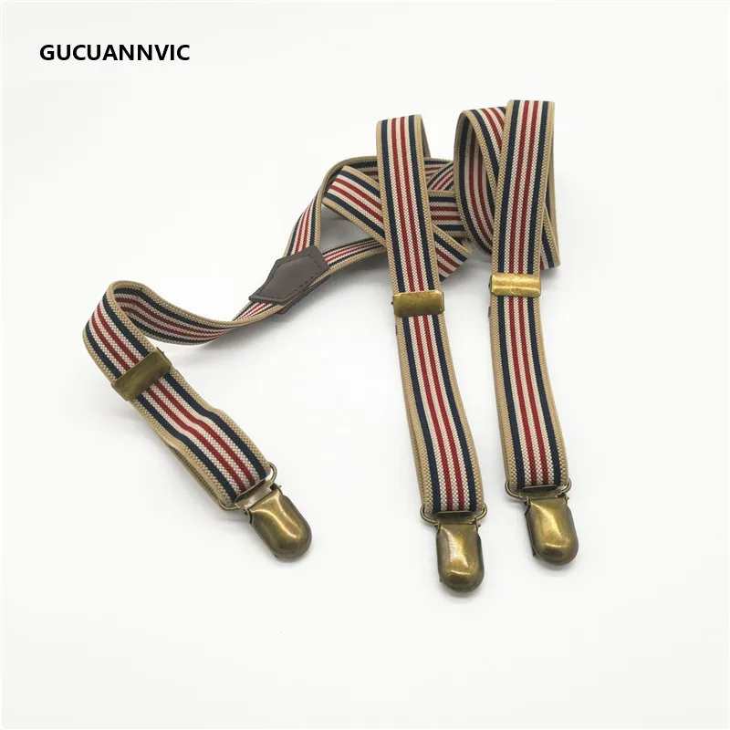 NEW Bronze 3 clip buckle suspenders elastic strap 4 stripes retro women's suspenders Adjustable braces men and women