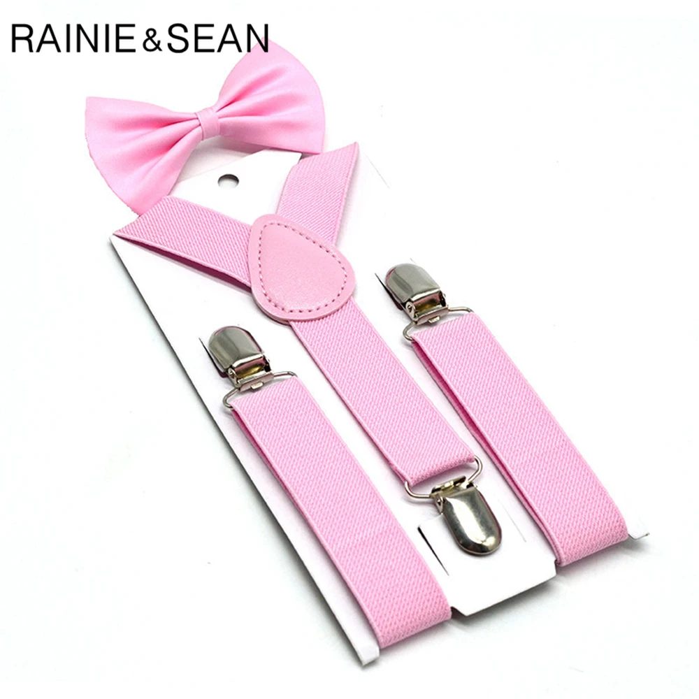 RAINIE SEAN Pink Kids Suspenders Bowtie Set Solid Children Suspender Dress Wedding Baby Girls Braces