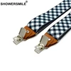 SHOWERSMILE Suspenders Men Black White Checkered Vintage Mens Suspenders Braces Wedding Braces Elastic Suspender Straps 120cm