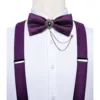 Mens Silk Suspender Bow Tie Set 6 Clips Braces Y Shape Suspenders For Wedding Party Men Accessories With Brooch Chain DiBanGu