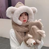 шапка 2021 New Autumn Winter Three Piece Set Plush Bear Gloves Hat Scarf Integrated Outdoor Plush Thickened Fashion H Letter