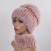 New Women Winter Luxury Real Rex Rabbit Fur Hat Scarf 2 Pieces Knitted Rex Rabbit Fur Hat Top Natural Fox Fur Cap Scarves Sets