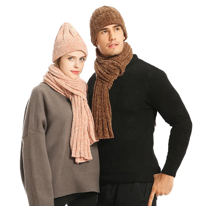 New Autumn Winter 2022 3 Pcs/set Scarf Couples Fashion With Men Women Simple Thickening Wear Resistant Warmer Hat Gloves Set