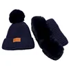Winter Hat Scarf Double-Layer Thickened Warm Ear Protection Fur Ball Cap Leather Label Knitted Woolen Cap Bib Two-Piece Set