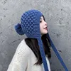 Pure Color Ear Protection Wool Hat Children's Autumn and Winter Warm Baotou Knitted Hat Windproof Warm Damp Band Wool Ball