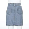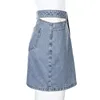 Women's High Waist Denim Party Skirt 2020 Hollow Button Zipper Mini A-line Skirt Ladies Sexy Clothing Female Night Club Wear