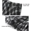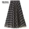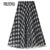 Treutoyeu Gothic Pleated Tulle Long Skirt Vintage Black White Plaid Soft Mesh A Line Woman Skirts 2020 Fashion Faldas Mujer