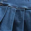 y2k Kawaii Denim Pleated Skirts Mini Solid Casual Woman Fashion Korean Style High Waist Skirt With Shorts Club Party Girls 2022