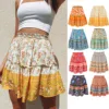 Casual Women Skirts Hot Sale Above Knee Mini Skirt 2021 Bohemian Floral Print Ruffles A-line Skirts Shirring High Waist Skirt