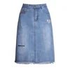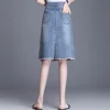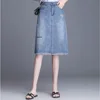 Knee Length Denim Skirt Women Streetwear Casual Pocket High Waist Straight Jeans Skirt for Women Plus Size 2XL 3XL 4XL