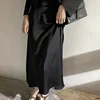 Summer women Midi Skirts Womens England Office Lady Satin High Waist Simple Elegant Long Skirt Women Faldas Mujer Moda 2021