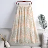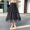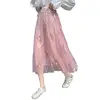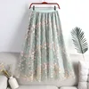 Embroidered Tulle Midi Skirt Fashion A-line Mesh Skirt Elegant High Waist Floral 2021 Summer Women Female Polyester Casual