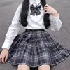 HOUZHOU Kawaii Plaid Skirt Women Harajuku Cute Black High-Waisted Pleated Mini Skirts for Girls Japanese School Uniform Summer