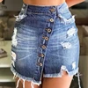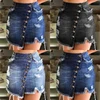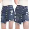 On Sale 2021 Summer Sexy Womens Vintage A-line Irregular Skirt Front Button High Waist Denim Skirt Ladies