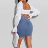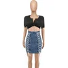 DenimColab High Waist Stretch Corn Rope Denim Skirt Women Snow Wash Bandage Skirts Ladies Zipper Summer Skinny Mini Office Skirt