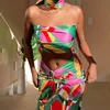 2021 New Summer,women's Wear,printing,sexy Neck,fashion Multiple Laceup,revealing Shoulder and Navel,two-piece Skirt,party Dress