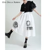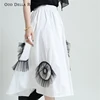 OddDellaRobbia Summer Original Personality Design Lace Graphic Stitching High Waist Elastic Band Contrast Color A-Line Skirt2081