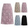 Korean Fashion Bodycon Skirt Women 2022 Hollow Out Lace A-line High Waist Knee Length Skirt for Office Pencil Skirts Black XXXXL