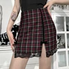 Gothic Autumn Woman Sexy High Waist Plaid Skirt Goth Grunge Vintage Lace Trim Bow Zipper Y2K Split Skirt Egirl Emo Alt Clothes