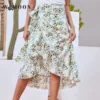 Summer Strap Split Irregular Floral Chiffon Long Skirt Asymmetrical Lace-up Elegant Flowing Polyester LadyStyle Woman Skirts