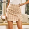 2021 Summer New Sweet Academy Skirt Contrast Plaid High Waist A-line Skirt A-LINE Above Knee, Mini Woman Skirts Plaid Skirt