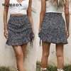 2021 Summer New Short Drawstring Printed Pleated Ruffled Skirt Floral Asymmetrical Shirring Above Knee, Mini Zippers Woman Skirt
