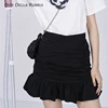 OddDellaRobbia Summer New Fashion Sports Style Black Slim-Fit Pleated High-Waist Fishtail Half-Length A-Line Skirt OL WomenB9003