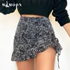 2021 Summer New Women's Sexy Leopard Skirt Ruffled Rope Slim Skirt Asymmetrical Lace-up Above Knee Mini skirts