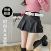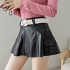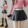 Oneimirry Short PU Leather Black Skirt Woman Korean High Waist Folds Ruffles A-line Sexy Mini Skirts Casual Autumn Winter 2021