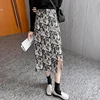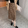 Oneimirry Leopard Print Skirts Women Korean Harajuku Midi Skirt Sexy Split Slim Lady Streetwear Straight Faldas Mujer Moda 2021