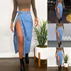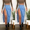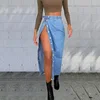 2021 Summer Casual Blue Jeans Fringed Split Women Long Skirts Pants Women Fashion High-waist Denim Long Skirts